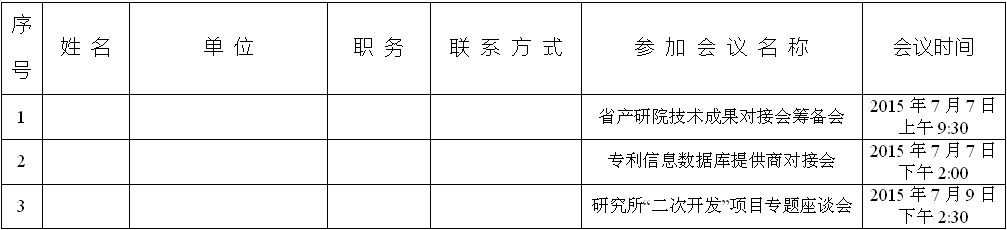 7月9日(周四)下午2点30,在省产研院(徐庄软件园动漫走廊15号楼)202会议室,召开研究所“二次开发”项目专题座谈会,主要交流今年正在开展或重点拟开展的“二次开发”项目情况。请有关所对口联系的技术总监参会。并于7月6日12点前前将参会人员名单和“二次开发”、重点合同科研项目清单
